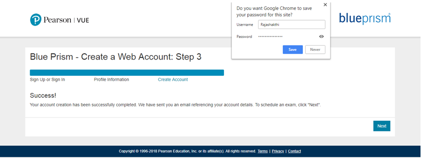 There are 3 steps to be completed before opening your new Pearson VUE account.